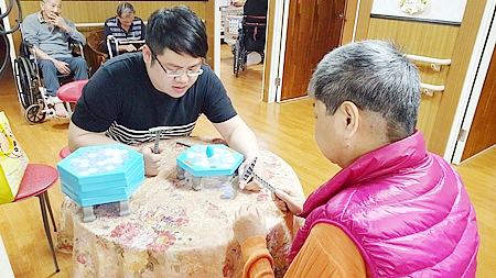 服務介紹 活動剪影 慈安活動剪影 團體活動- 106.04.19 拯救企鵝敲冰磚遊戲 106.04.19 拯救企鵝敲冰磚遊戲今天我們準備了現在很夯的桌遊-拯救企鵝敲冰磚,阿嬤們充滿好奇的問這要怎麼玩,簡單說就是不要讓這隻鳥跌倒喔,冰塊一垮,阿嬤們都是一聲驚呼,接著笑到合不攏嘴呢。 返回