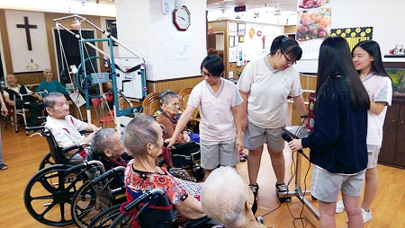 服務介紹 活動剪影 慈安活動剪影 106.10.22 耕莘護校學習服務 中心非常開心有耕莘護專的學生們來到中心進行服務學習,幾位未來的護理師妹妹們帶來一連串活動和歌唱表演,真的是相當用心呢,讓阿公阿嬤們度過一個愉快的下午喔。 返回