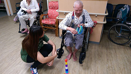 服務介紹 活動剪影 慈和活動剪影 日常活動- 學生志工-耕莘護專 社工今天帶領九宮格活動,讓長者活動活動一下筋骨。一開始中心長者對於此活動道具感到有興趣,有長者詢問社工,這是不是要照相。長者們經由社工講解活動內容及規則後,都能夠自己拿起球將九宮格的牌子打下來,有的長者甚至能把全部牌子都丟下來呢。 返回
