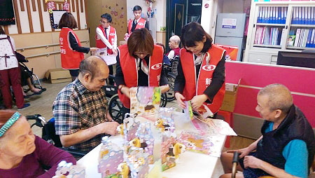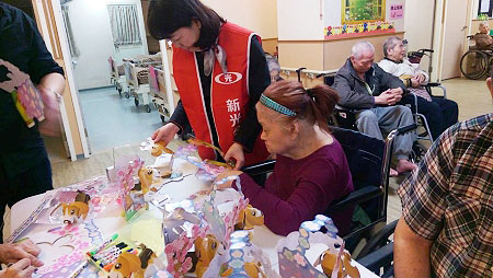 服務介紹 活動剪影 慈和活動剪影 106.12.01 新光銀行-新年燈籠製作 新光銀行志工們來我們中心與長者們一同做燈籠,長者們在志工們協助下,紛紛完成屬於自己的燈籠,並與自己的燈籠開心的合照,長者們都覺得燈籠很漂亮,紛紛說要把這個掛在自己床頭上裝飾呢。 返回
