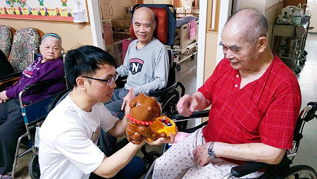 服務介紹 活動剪影 慈和活動剪影 107.04.11 團體活動-小心惡犬-偷骨頭遊戲 今天社工帶小心惡犬-偷骨頭遊戲,此活動惡犬驚嚇程度高,所以社工先示範惡犬跳起來樣子,讓中心長者做好心理準備,在遊玩時社工讓惡犬跟長者保持安全距離,如遇不敢拿骨頭的長者,我們會由工作人員代勞,讓長者玩得輕鬆沒負擔,骨頭拿得最多,獎品相對越多,長者們都玩得很開心呢。 返回