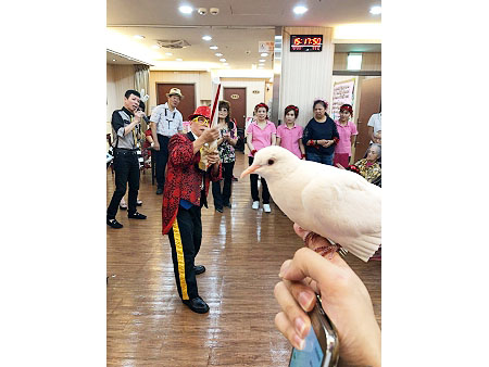 服務介紹 活動剪影 慈和活動剪影 107.11.25(天使愛樂團)歡慶活動 天使愛樂團,來到我們慈和關懷我們中心的長輩們。天使愛樂團帶來唱歌、跳舞、煞克斯風,還有魔術表演,當場魔術師就變出鴿子呢,阿公阿嘛都看得不亦樂乎。天使愛樂團專業的演出讓我們大家在今天玩得不亦樂乎。 返回